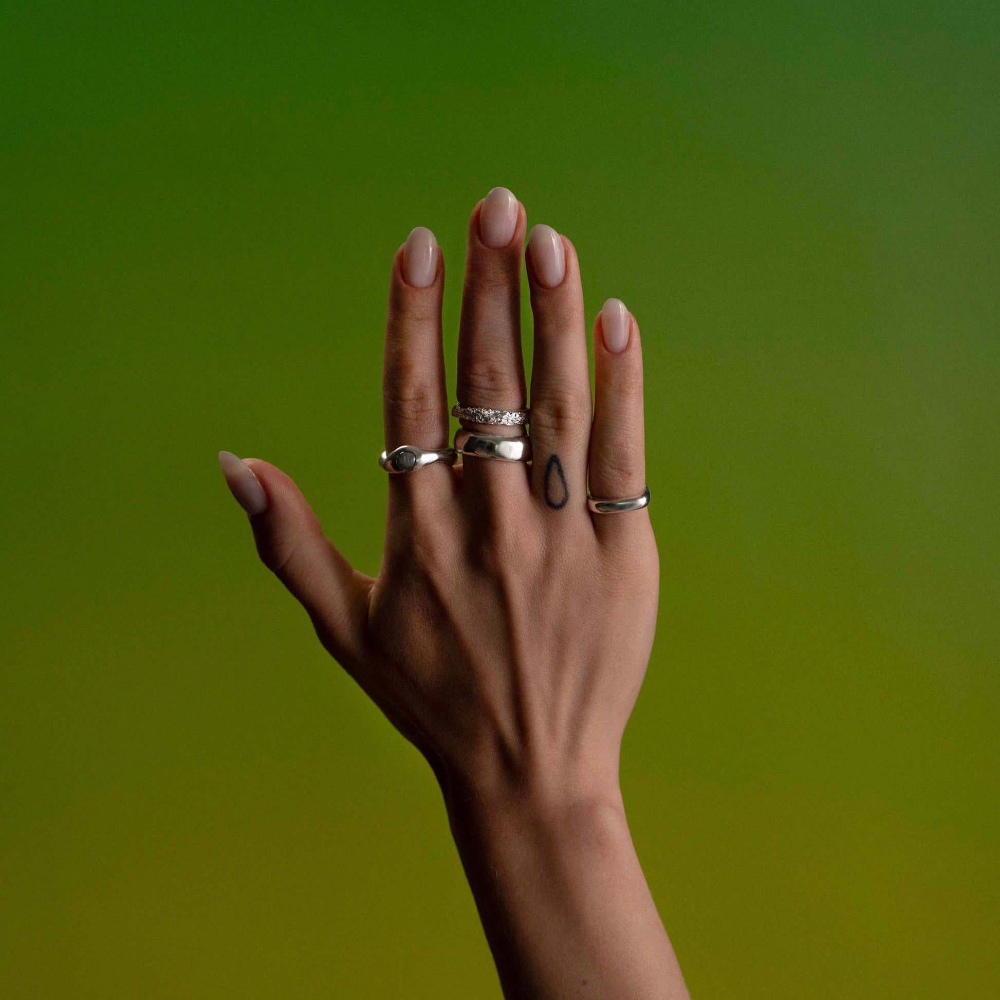 Unique Motion ring with 1,36 ct. cabashon cut, grey star sapphire.